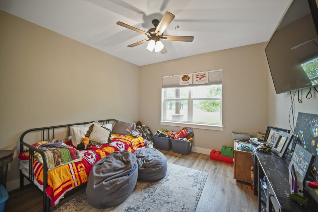 The partially covered outdoor area is designed with entertaining in mind. Spacious and comfortable, it features a mounted TV so you can catch a game or stream your favorite show while still being part of the outdoor action. There’s ample room for outdoor furniture, making it easy to create multiple lounging areas for guests to spread out and unwind. Whether you’re hosting a lively get-together or enjoying a quiet evening, this outdoor space delivers both comfort and style. And in addition to this, the land offers ample room for recreation, animals, or future expansion.